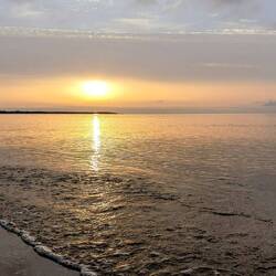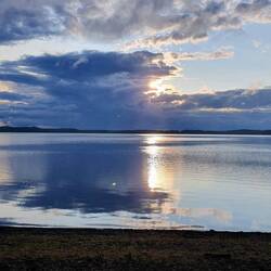 Dann starten wir auf eine kürzere Tour, ist ja bereits Nachmittag. Es geht bis Lammi. Zuerst auf Radwegen aus der Stadt raus und dann auf eine große Straße, was Steffi wieder nicht so gefällt mit dem Verkehr. Als sie dann voraus fährt statt im Windschatten von Markus ist es besser, so sieht sie mehr. Kurz vor Lammi tröpfelt es, retten uns erst mal in einen Kioski, was Warmes trinken. Dann was einkaufen und zum Stadtstrand, dort finden wir eine Campmöglichkeit. Nochmal kurz ins Wasser, wird schon wieder kälter und dann noch was kochen. Es gibt Thunfischpasta. Können nebenher noch den Sonnenuntergang beobachten und der Regen verschont uns bis auf ein paar Minitropfen. Gute Nacht.