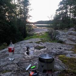 Als wir 'unseren' Zeltplatz erneut aufsuchen können wir noch den Sonnenuntergang geniessen. Anschliessend kocht Markus, während Steffi Zelt aufstellt & einrichtet. Gegessen wird dann im Zelt drin, denn offensichtlich haben sich einige hungrige Mücken denselben Übernachtungsplatz ausgesucht wie wir...