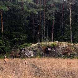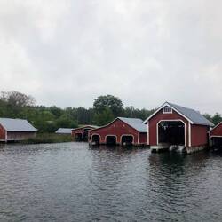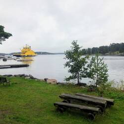 Unsere Archipel-Runde beschert uns heute fünf Fährfahrten: 2x auf einer 'grösseren' Fähre (Platz für vielleicht etwa 20 Fahrzeuge), welche 4-6x täglich nach Fahrplan fährt sowie 3x auf einer kleineren Fähre, welche den ganzen Tag einfach nach Bedarf fährt. Die Velostrecken zwischen den Fähren sind hügelig, mit wenig Verkehr & abwechslungsreich. Die Inseln wären bei Sonnenschein natürlich noch viel attraktiver als heute, aber auch so gefällt es uns. Auf der Schäreninseln Iniö hat noch ein Café geöffnet mit frisch gebackenen Zimtschnecken, da müssen wir Halt machen. Sehen unterwegs mehrmals Rehe & einmal sogar einen Fuchs (dies vielleicht ein Vorteil des trüben & nassen Wetters).