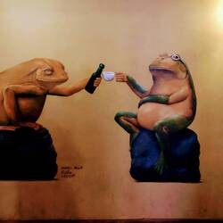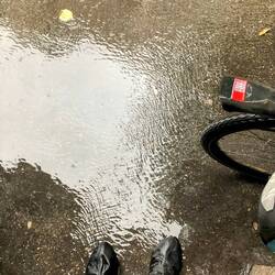 Die Trockenphase mit Sonnenschein nutzen wir auch um die Kette zu ölen. Bei Steffi's Velo entdecken wir dabei einen blinden Passagier: Auf dem Wechsler liegt ein kleiner, ausgedörrter & toter Frosch 😳...