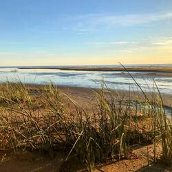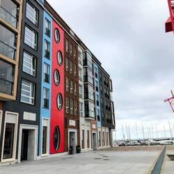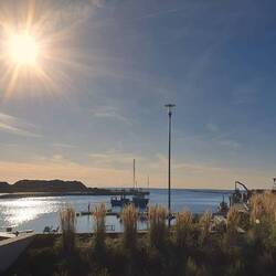 🗒️Beim ersten Blick aus dem Zelt ist alles nebelig. Mystisch. Die Stadt ist nicht zu sehen und um uns rum auf dem Wasser nur Nebel. Das Wasser lockt nochmal für ein kurzes Morgenbad. Langsam lässt die Sonne den Nebel verschwinden und die Welt um uns rum taucht wieder auf. Wir packen zusammen und frühstücken am Wasser in der Sonne. Beschließen dann als erstes das Cafe Morton am Hafen zu besuchen für einen zweiten Kaffee, Fotos sortieren und Pingu schreiben. Hier am Hafen sehr moderne Häuser und Hausboote. Es ist herrlich, hier in der Sonne zu sitzen.