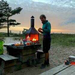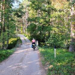 🗒️Nach 6 Tagen ohne richtiges Radfahren geht es heute wieder los. Wir frühstücken noch mit Thomas und Anneli, bekommen die letzten Tipps und dann los. Unsere Strecke heute flach. In Estland ist der höchste Berg 318m hoch und damit der höchste Berg im Baltikum. Es wird also erstmal flach bleiben. Wir fahren an der Ostsee entlang nach Westen, wobei wir vom Meer wenig sehen. In Keila-Joa machen wir einen kurzen Abstecher zum Mini-Wasserfall. Zur Mittagspause gehts nach Rummu. Dort wurde früher Kalkstein abgebaut. Es hat sich mit Grundwasser ein sehr klarer See gebildet und der Abraumberg hat bizarre Formen angenommen. Zudem gibt es ein altes verfallenes russisches Gefängnis. Die Gebäude stehen heute zum Teil im Wasser. Wir picknicken und gestärkt gehts weiter. In einem kleinen Dorf kaufen wir in einem Minisupermarkt ein. Sehr interessant was es dort zu kaufen gibt. Wir finden ein Couscous mit ca. 3mm großen Kugeln, das müssen wir probieren. Das Sortiment scheint aus der ganzen Welt zu kommen. Ist wohl ein eigenständiger Supermarkt, keine Kette. Mit genügend Proviant gehts dann zum Nõva rand (Peraküla telkimisala), ein schöner großer Sandstrand. Hier liegt ein RMK Camping. RMK ist das Forstamt Estlands und auf ihrer Webseite findet man alle von ihnen gepflegten Campingplätze, Feuerstellen, Rastplätze und Wanderungen. Und das alles kostenfrei, auch die Esten sind gerne in der Natur. Der Weg dorthin ist mühsam über eine Gravelroad mit vielen Steinen und Löchern. Als wir dort ankommen sind wir nicht alleine. Es ist Samstagabend und anscheinend hatten viele die Idee hier zu übernachten. Am Strand steckt gefühlt alle 5m eine Angel im Sand. Schade, hatten auf ein einsameres Plätzchen gehofft, aber es ist ein sehr schöner Ort. Verzichten auf ein Bad zwischen den Angelruten. Stellen das Zelt im Wald auf und kochen unseren Kugelcouscous. Schmeckt eher wie Pasta. Lecker. Und wir haben mal wieder ein Lagerfeuer. Die Esten sind sehr freundlich. Wir wollten am Boden kochen, doch zweimal werden wir gefragt ob wir nicht zu einem Tisch/Feuer kommen wollen, da kann man nicht nein sagen. Dann ab ins Zelt und trotz der Partymusik im Hintergrund schlafen wir schnell ein.Læs mere