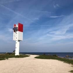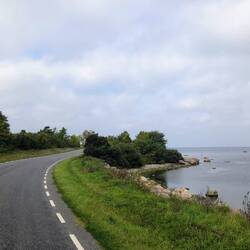 🗒️Nach dem Start geht's nochmals paar holprige Gravel-Kilometer weiter, aber zu Beginn des Tages fühlen sich diese weniger schlimm an als gestern am Ende der Etappe. Dann ein Sackgass-Abstecher zum Spithamn-Leuchtturm mit schöner Steinküste. Die Sonne scheint & so stört uns auch die eher eintönige Landschaft nicht: Alles ist extrem flach, die Strasse ist immer mal wieder als kilometerlange Gerade angelegt. Dazu etwas Gegenwind. Da ist wieder dieses irgendwie meditative, leicht einschläfernde Gefühl.