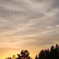 Die Landschaft hat sich gegenüber weiter nördlich deutlich verändert, weniger Nutz- dafür mehr natürlicher, wilder Wald, grosse Landwirtschaftsflächen mit Getreide & Wiese & natürlich auch immer wieder Seen. Auf den Feldern haben wir schon mehrmals grosse Vögel gesehen, die wir aber nicht einordnen konnten. Nehmen uns heute mal die Mühe & bestimmen diese als Kraniche. Treten meistens zu zweit auf & sehen majestätisch aus, wenn sie mit ihren 2-2.5m Flügelspannweite durch die Luft gleiten.
