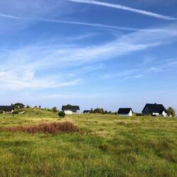 🗒️Haben fast 10 Stunden geschlafen! Da wir gestern bereits um 21 Uhr im Schlafsack lagen sind wir heute um 7 Uhr wach und um 9 Uhr gehts los. Markus fühlt sich viel besser und übernimmt wieder die Führung. Rasant düsen wir dahin. Die Straßen oft sehr gerade, die Landschaft flach, teils Bäume, teils Landwirtschaft. Typisch hier sind die Steinmauern um die Häuser und einige alte Häuser haben ein Reetdach. Die Bäume unterschiedlich, wir sehen Kiefern, Wacholder, Birken, voll beladene Apfelbäume und anderes.