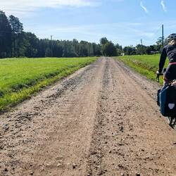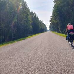 Auch heute folgt unsere Route oft der Eurovelo EV10 resp. EV13. Hier in Lettland sind diese allerdings ziemlich abenteuerlich angelegt: Entweder hat man das Gefühl auf der Autobahn unterwegs zu sein (ist aber wie gestern 'nur' die Schnellstrasse A1 mit einem Seitenstreifen, dessen Breite zwischen minimalistischen 20cm & einem komfortablem Meter variiert & die trotz Wochenende ziemlich viel PW- & LKW-Verkehr führt) oder man fühlt sich auf einem MTB-Trail (holprige Gravel-Küstenstrasse bis zu sandigem Waldweg). 'Normale' kleinere Strassen scheints zumindest hier in Küstennähe kaum zu geben. Aber egal, wir sind da nicht allzu wählerisch.
