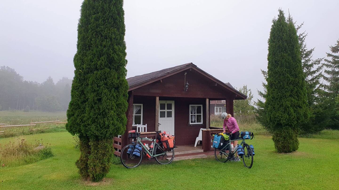 In Kuressaare schauen wir die Arensburg an, eine Burg aus dem Mittelalter. Dann ein kurzer Kaffeestopp und weiter düsen wir, soll heute Abend noch schwer regnen, also schnell voran. Mittagspicknick in einem Bushäuschen. Plötzlich fühlt sich Steffi auch nicht mehr so gut, ihr ist leicht schlecht, mal sehen was da kommt. Angesichts dieser Tatsache und des zu erwartenden heftigen Regens buchen wir nochmal eine kleine Hütte. Werden in Ridasi nett empfangen, bekommen sogar ein Cottage-Upgrade. Gute Wahl, genießen einen entspannten Abend und sind dann hoffentlich morgen beide wieder fit!