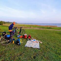 Heute wieder ein sonniger, schöner Tag. Morgens aber doch frischer und alles feucht vom Tau. Es ist eben nicht mehr Hochsommer 😢. Fühlen uns beide wieder recht fit und das Frühstück schmeckt. Starten spät um 11:15. Zuerst gehts kurz zum Strand von Pärnu, ein herrlich schöner Sandstrand, im Sommer ist hier bestimmt viel los. Dann kurz was einkaufen und jetzt Gas geben. Es geht eine schöne kleine Nebenstraße entlang Richtung Süden mit fast null Verkehr. Wir blicken auf Felder, Wälder und ab und an blitzt das Meer auf der rechten Seite heraus, dazu lacht die Sonne. Super schön zum Radfahren. Mittagspause nochmal an einem RMK Platz. Kurz essen und das nasse Zelt etwas trocknen. Und dann gehts über die Grenze nach Lettland. Jetzt müssen wir auf die A1, eine Autobahn? Nein, nur eine Schnellstraße, aber doch mehr Verkehr und nicht so schön. Naja. In Salacgrīva unser erster Einkauf in einem lettischen Supermarkt, immer wieder spannend ein neues Land. Machen aber erst mal noch keine Experimente, besser für unsere Mägen. Da es doch schon wieder spät ist suchen wir uns ein Schlafplätzchen am Svētupes Strand. Hier ist ein Wildcamping (Platz für Zelte & Wohnmobile, Plumpsklo), der bereits geschlossen ist, aber die Besitzerin taucht auf. Für 5 Euro können wir bleiben. Ein kurzer Besuch am Strand, bisschen kochen und um 21:15 sind wir im Schlafsack, da es kalt wird.Læs mere