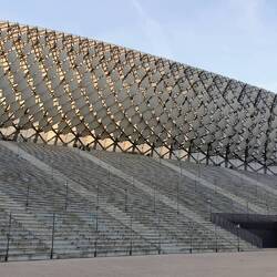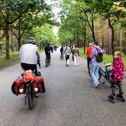 Danach geht's im Gegenwind mehr oder weniger zügig weiter. Je näher wir Riga kommen, unterdessen sogar auf einer kleineren Strasse als der A1, desto dichter wird der Verkehr. Umso glücklicher sind wir, als die Route die Autostrasse verlässt & und durch den Mežaparks führt: Ein riesiger, grüner Park, der heute Samstag auch von den Locals sehr gut besucht wird. Haben das Gefühl, dass heute alle Letten irgendwo unterwegs sind: Entweder irgendwo im Wald am Beeren oder Pilzen sammeln oder mit Velo, auf Inline Skates oder zu Fuss im Mežaparks. Wir fahren an der riesigen Freilichtbühne 'Mežaparka Lielā estrāde' vorbei - ein eindrückliches Bauwerk, welches Platz bietet für ca. 13'000(!) ChorsängerInnen & 30'000 ZuschauerInnen. Muss eindrücklich sein, hier einer entsprechenden Aufführung beizuwohnen!