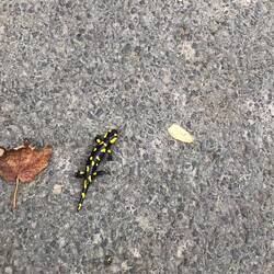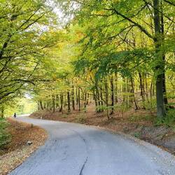 Wir passieren eine weitere Landesgrenze & betreten mit Ungarn bereits das 12. Land unserer Reise. Danach folgt ein ca. 20km langer, sanfter Aufstieg durch den Duna Ipoly Nemzeti Nationalpark. Führt auf einer kleinen, aber guten Strasse durch den Wald. Nur ganz wenige Autos passieren uns. Plötzlich entdecken wir auf der Strasse einen Feuersalamander, der sich in Zeitlupentempo über die Strasse bewegt. Wow, was für ein schöner Anblick!