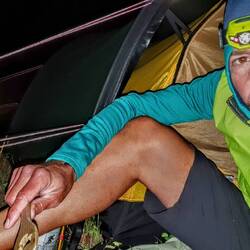 Kurz vor 18 Uhr finden wir paar Meter von der Strasse entfernt auf einer kleinen Lichtung unseren persönlichen Zeltplatz. Steffi richtet im Zelt drin alles ein, Markus kocht draussen Tomatensuppe mit gefüllten Gnocchi. Die Temperatur sinkt schnell, zum 23 Uhr herrschen draussen noch etwas 6°C, im Zelt drin immerhin etwa 9°C. Mümmeln uns in die Schlafsäcke & schlafen schnell ein.Leggi altro