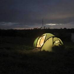 Montegrotto Terme erreichen wir mit dem letzten Tageslicht. In einem Cafe trinken wir einen schnellen Cappuccino, nutzen das WC um uns zu waschen & suchen einen Wildcampingspot. Radeln mit Stirnlampe noch schnell die 2km zur auserkorenen Wiese/Acker. Etwas schräg hier, aber geht & schnell ist das Zelt aufgestellt. Gerade rechtzeitig, jetzt beginnts auch schon zu regnen. Steffi richtet wie meistens das Innenleben ein, während Markus halb im Vorzelt, halb draussen kocht.