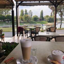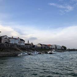Dann geht's weiter, für Steffi ausschliesslich im Top, für Markus ohne Unterhemd. Sooo warm war's wirklich schon länger nicht mehr. In Újmohács warten wir rund 20 Minuten auf die Fähre, die uns auf die andere Donauseite nach Mohács bringt. Dort gibt's sogar den zweiten Café-Halt des heutigen Tages. Vielleicht ist das der Grund, dass wir mit dem Gegenwind so gut zurecht kommen😉?