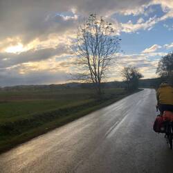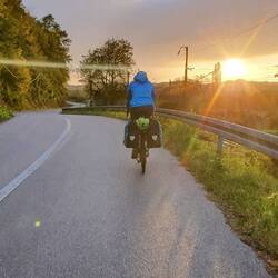 🗒️In der Nacht regnet es zum Teil heftig, aber das Zelt ist wie immer dicht und pünktlich morgens um 6:00 hört der Regen auf und um 7:00 guckt die Sonne über die Hügel und scheint aufs Zelt. Hatten somit gestern trotz Dunkelheit einen guten Platz gefunden 🙂. Zum Start gehts weiter hoch in den Parco Regionale dei Colli Euganei. Man kann weit in die Poebene hinein Richtung Meer gucken, sehr schön im Morgenlicht. Belohnt für die Anstrengung werden wir mit der Abfahrt. Den Colli selber lassen wir links liegen, hier wehen ein paar Wölkchen in hohem Tempo drüber. Wir kurven zwischen den Weinbergen ins Tal. Unten empfängt auch uns der Wind und bläst uns entgegen, so kommen wir trotz flacher Strecke langsamer mit nur 18 km/h voran und es ist viel anstrengender. Landschaftlich schön: Weinberge, Felder, Dörfer mit bunten oder alten Häusern, Kirchen und in der Ferne die Alpen. In San Gregorio machen wir in einer Bar Pause. Hier ist am Sonntag Vormittag viel los. Das ganze Dorf scheint sich auf ein Getränk zu treffen. Auch wir werden direkt angesprochen, woher, wohin…sehr nette Atmosphäre. Gestärkt kämpfen wir weiter gegen den Wind, immer Richtung Westen bis nach Verona. Dort machen wir Pause auf der Piazza dei Signori. Kinder spielen Fußball, eine Frisbee wird geworfen und Eis geschleckt. Alle sind am genießen der Sonntagssonne. Anschließend gehts kurz durch die Stadt über den Piazza delle Erbe zur Arena. Es ist unglaublich viel los. Menschenmassen sind unterwegs. Das sind wir nicht mehr gewöhnt. Es zieht uns raus aus der Stadt. Weiter gehts an der Etsch entlang vorbei an der Ponte di Castelvecchio zum Canale Biffis. Dort an einem Café nochmals Pause. Ein kleines Stück schaffen wir im Anschluss noch weiter entlang am Canale Biffis bis nach Sega. Dort ein schneller Einkauf und im Dunkeln finden wir hinter den Reben an der Etsch ein Nachtlagerplatz. Zwar steht hier man soll vorsichtig sein wegen Flutwellen, aber das Unwetter ist ja vorbei. Kochen uns noch Gnocchi in Tomatensoße. Es ist mittlerweile Abends kalt und ungemütlich, ist ja auch bereits November und wir kommen wieder nördlicher 😢.Leggi altro