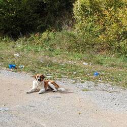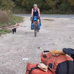 Eine weitere Eigenheit von Bosnien & Herzegowina sind die zahlreichen streunenden Hunde. Während in der Slowakei, Polen, Kroatien die Hunde meist hinter einem Zaun oder an der Leine gesichert waren, uns aber wie blöd anbellten, laufen sie hier frei herum resp. gehören wahrscheinlich niemandem, sondern leben generell auf der Strasse & sind oft zu zweit unterwegs. Dennoch sind sie viel friedlicher & lassen uns meistens in Ruhe. Beim Aufstieg nach Bugojno befinden sich bei fast jeder Ausweichstelle/Parkplatz mehrere Hunde, die sich diesen Platz gemeinsam teilen. Schlafen oder blinzeln uns mit müden Augen zu. Etwa 3km vor der Passhöhe macht Markus bei einer Ruine ein Foto, als ein kleiner schwarzer Hund hervorkriecht & intensiv schwanzwedelnd zu ihm kommt & ihn mit treuherzigen dunklen Augen anschaut. Kurzes Streicheln, paar aufmunternde Worte & dann geht's für Markus weiter. Der Hund scheint Gefallen an diesem Velofahrer gefunden zu haben & folgt ihm tapfer. Mal auf Augenhöhe, dann wieder mit etwas Abstand. Erst nach etwa 2km wird es ihm zu anstrengend & er bleibt zurück. Auf der Passhöhe wartet Markus auf Steffi & siehe da, als sie ankommt hat sich Hundi an sie geheftet😍! Wow, der ist uns nun für etwa drei Bergkilometer gefolgt! Dafür hat er einen grossen Becher unseres Wassers verdient & ein paar Happen Burek kriegt er ebenfalls ab. Nun folgt aber gleich ein Tunnel & da weiss offenbar auch Hundi, dass das nix für ihn ist, schaut uns noch traurig nach, aber bleibt zurück. Tut auch uns etwas weh, ihn einfach so zurück zu lassen. Wissen nicht, wie gut das Leben eines streunenden Hundes ist?