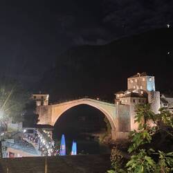 🗒️Der Tag startet mit einem großen Omelett zum Frühstück im Motel. Die Energie werden wir gut gebrauchen können. Beim Start sieht der Himmel dunkel aus und es gibt ein paar Tropfen, aber dann hält das Wetter. Wir blicken noch mal in die weite Hochebene rund um Tomislavgrad und dann geht es hoch. Die Bäume sind herbstlich gefärbt. Wunderschön. Und immer mehr blauer Himmel zeigt sich. Es geht runter zum Blidinje See. Die Sonne beleuchtet jetzt alles, wir sind begeistert von der Landschaft. Umrunden den See auf einer Gravelstrecke. Dann gehts weiter hoch auf der Straße und bald erneut auf einen Gravelweg. Karge Bergwiesen rechts und links mit vereinzelten Sträuchern. Wir sind ganz alleine, nur Natur und Ruhe. Gefällt uns sehr hier. Teilweise müssen wir schieben, weil es zu steil hoch geht, aber die Landschaft entschädigt für die Mühen. Nochmal wird der Himmel dunkler, aber ohne Regen. Wir scheinen heute großes Glück zu haben mit dem Wetter, laut Vorhersage hatten wir mit Regen gerechnet. Bei der Abfahrt werden die Steine immer gröber, es holpert und poltert. Unsere armen Fahrräder leiden, hoffentlich gibt es keinen Schaden. Einmal müssen wir Schrauben nachziehen, die sich gelockert haben und ab und an ist es so übel, dass wir auch bergab schieben. Und der Gravel will und will nicht enden. Jetzt wird es doch anstrengend und wir kommen nicht voran. Sind so auch bergab langsam. Am Ende ist es eine unserer längsten Gravelstrecken der Reise. Wieder auf der Straße genießen wir die Abfahrt. Müssen mal wieder die Lampen anmachen und Kurve um Kurve nähern wir uns Mostar. Es richt gut und anders, nach Süden. Im Tal leuchten die Lampen der Stadt. Unten angekommen gehts in ein Café, müssen noch eine Unterkunft finden. Es wird eine einfache Wohnung direkt in der Altstadt. Werden freundlich empfangen. Ziehen direkt los, um was zu essen und die Stadt zu erkunden. Sehr schöne alte Häuser, Moscheen und die Stari Most (alte Brücke). Die Stari Most verbindet den östlichen muslimischen Teil mit dem westlichen katholischen Teil der Stadt. Sie wurde 1566 erbaut und führt über den Fluss Neretva. Sie ist 19m hoch. Mutige trauen sich hier runter zu springen. Im Bosnienkrieg wurde sie zerstört, doch zum Glück ist sie wieder aufgebaut worden. Sie ist ein Bindeglied zwischen Ist und West. Es war ein wunderschöner Tag, mit vielen Bildern und Eindrücken im Kopf geht’s ins Bett.Leggi altro