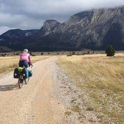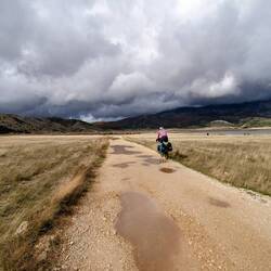 Nach diesem zweiten Pass sind es nur noch 40km bis zum heutigen Ziel, mehrheitlich bergab oder flach. Leider kommt jetzt aber auch starker Gegenwind auf & diese letzten Kilometer ziehen sich ziemlich in die Länge, wenn man stellenweise nur noch mit etwa 13km/h vorwärts kommt. Landschaftlich allerdings super schön, leicht hügelig, Hochebene-artig.