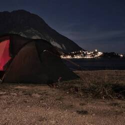 🗒️Da gestern die Uhr umgestellt wurde und somit der Sonnenuntergang 1h früher ist, heißt es für uns auch früh raus. Wir haben heute viel vor und wollen die Helligkeit ausnutzen von Sonnenaufgang 6:15 bis Sonnenuntergang 16:55. Ganz so früh klappt das natürlich nicht, dauert wieder mal alles länger. Kurz vor 9:00 Uhr gehts dann los. Steffi ist etwas genervt wegen des nicht so frühen Starts und hat auch Respekt vor der Hauptstrasse an der Küste. Aber die Sonne scheint und es wird schon werden. Zuerst aus der Stadt raus allerdings tatsächlich nicht so schön zu fahren mit den Autos, aber ganz bald bessert es sich und es rollt gut. Der Ausblick aufs Meer und die vorgelagerten Inseln ist fantastisch. Bald gehts dann eine etwas kleinere Straße den Berg hoch, hier kein Verkehr und der Ausblick wird noch besser. Die mediterrane Vegetation duftet fein. Olivenbäume säumen den Weg. Jetzt auch die Stimmung wieder besser. Oben gibts zur Belohnung was Süßes und dann rollen wir bergab bis Slano, wo wir wieder der Küstenstraße folgen. Kurz nach Doli verlassen die meisten Autos unsere Straße und fahren über die Halbinsel Pelješac und weiter über die Pelješac-Brücke wieder ans kroatische Festland. Fahrräder sind auf dieser Brücke allerdings nicht zugelassen, somit gehts für uns auf dem Festland weiter: Bei Neum durchfahren wir einen 10 Kilometer langen bosnischen Korridor. Hier hat Bosnien und Herzegowina Zugang zum Meer. Also gibt es zwei Passkontrollen, Ausreise EU und wieder Einreise EU. Mit der Pelješac-Brücke ist diese Grenzkontrolle seit dem 26.7.2022 nicht mehr notwendig, da man in Kroatien bleibt. Wir freuen uns über die leere Straße und einen günstigen Bäckerei- und Supermarkt-Stopp. Machen in Neum Pause. Am Nachmittag entdecken wir das Neretva Delta. Wir kennen die Neretva bereits aus Mostar. Der Fluss fächert breit aus ins Meer. Dies ist wunderhübsch anzusehen und wird intensiv zur Landwirtschaft genutzt für den Anbau von Gemüse und Zitrusfrüchten. An einem kleinen Gemüsestand kaufen wir frisch geerntete Mandarinen ein. Und nochmal müssen wir ein paar Höhenmeter überwinden vorbei an den Baćina Seen nach Gradac. Jetzt wird es bereits dunkel, ist doch erst 16:30. Gönnen uns noch einen Kaffee in der Dorfbar. Jetzt ist es richtig dunkel. Haben aber per Google Maps bereits einen wahrscheinlich geeigneten Platz ausgekundschaftet. Dafür fahren wir einen kleinen Weg direkt am Meer entlang und tatsächlich taucht ein kleiner Grünstreifen hinter einer Mauer am Wasser auf. Stellen geübt das Zelt auf und kochen noch. Es stürmt etwas, aber jetzt ist zu spät für einen anderen Platz, wird schon gut gehen. Mit den vielen Kilometern und Höhenmetern in den Beinen sind wir müde und schlafen gut ein.Leggi altro