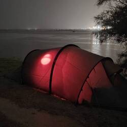 Das Zelt stellen wir dann auf dem schmalen Grasstreifen neben dem Damm auf. Haben noch ne grosse Portion Essensreste von gestern, somit entfällt heute das Kochen. Es ist warm, die Temperatur soll diese Nacht nicht unter 20°C fallen!Leggi altro