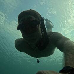 I'm laughing at the crazy set-up I have.... crappy fins, great mask,Read more