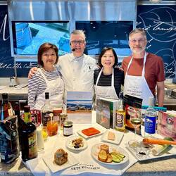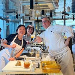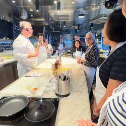After an overnight cruise at sea, we began the day with a Culinary Arts Kitchen cooking class with Chef John Stephano.