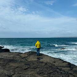 Unser Nachtplatz war uns ja schon bestens vertraut, aber diesmal hatte der Wind beschlossen, sich von seiner besonders temperamentvollen Seite zu zeigen – als ob er uns sagen wollte: "Na, denkt ihr wirklich, ihr kennt mich schon?" Perfektes Timing also, um zu Fuß zum Hook Lighthouse aufzubrechen und dabei eine kleine Wanderung einzulegen. Wenn ich allerdings gewusst hätte, dass ein Drittel des Weges durch Weiden führt, die von Bullen und Kühen bewacht werden, hätte ich mich lieber direkt ins Lighthouse gesetzt und mir einen Hamburger reingezogen. Ganz ehrlich.