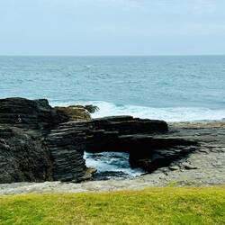 Hier angekommen, nutzen wir die Gelegenheit für eine letzte Wanderung. Der Wind pfeift uns um die Ohren, als wollte er sagen: „Willkommen am Ende der Welt!“ Noldi überlegt ernsthaft, ob er nicht noch einmal seine Angelroute auswerfen soll – der Ozean ruft förmlich nach einem Duell. Und wir? Wir lassen uns die frische Meeresbrise um die Nase wehen und saugen jeden letzten Tropfen dieses irischen Abenteuers auf. Denn wenn schon holprig, dann bitte mit Stil!