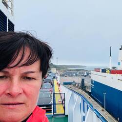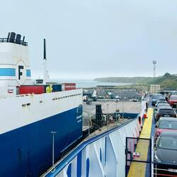 18 Stunden auf See – und was für ein Abenteuer das war! Schon beim Ablegen in Rosslare machte das Meer klar, dass es heute nichts zu lachen gab. Die Wellen tanzten wild, der Wind pfiff uns um die Ohren, und kaum hatten wir den Hafen hinter uns, wurden wir gebeten, das oberste Deck zu verlassen. Die Vorstellung, dort oben wie ein Fähnchen im Wind zu flattern, war dann doch nicht so verlockend. Also ab mit den Rucksäcken in die Kajüte und auf zur Bar – schließlich mussten wir uns stärken für das, was noch kommen würde. Essen brauchten wir nichts mehr, Rosslare hatte uns kulinarisch bestens versorgt.