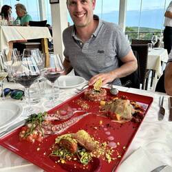 Beim letzten Anlegemanöver im Zielhafen kurz vor Mittag wird klar, die letzte Nacht dürfen wir gar noch näher beim offensichtlich landesweit beliebten Palmera verbringen. Ich rechne somit mit keinerlei erwähnenswerten REM-Phasen, ehe uns das Taxi um fünf Uhr in der Früh zum Flughafen fahren wird. Aber mal schauen, wie sich der Tag entwickelt. Vorher steht ja noch das Sieger- beziehungsweise Skipper-Dinner an. Bestellt wird, wie es sich für Casino-Millionäre gehört, viel zu viel. Mein auf Ressourcen schonen und Foodwaste vermeiden bedachte Herz blutet. Das gemeinsame und pink leuchtende Portmonee aufgrund der im nationalen Vergleich doch sehr unterschiedlichen Lebenshaltungskosten zum Glück nicht. Das oft mit Fäusten ausgetragene Debriefing während des Essens verläuft sehr zur Freude des bemühten Restaurantpersonals ohne nennenswerte Auseinandersetzungen. Haben es alle ganz toll gemacht. Vor allem der Skip. Und ich.
