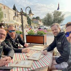 Der Mittwoch soll’s wieder richten. Wir segeln bei über zwanzig Knoten Wind durch die Ausläufer eines Sturms und treiben den Zweirümpfer immerhin auf 8,2 Knoten. Segeln ist schon geil. Doch irgendwann ist auch dieser Spass vorbei und auf den letzten Meilen zu unserem Zielhafen im wunderschönen Maslinika darf sich der erfolgloseste Fischer aller Zeiten - also Taeschler, nicht Fischer - nochmals an der Rute versuchen. Doch kaum ist der nun blau-grüne Gummi-Tintenfisch mit grossen Kulleraugen ausgeworfen kreuzt die nächste Motorjacht hinter uns. Und wir erleben das gleiche Spektakel wie tags zuvor. Diesmal kommt ebendiese Motorjacht allerdings sofort zum Stehen. Das ist neu. Und unerwartet. Meine drei “Freunde” tun umgehend so als wäre rein nichts gewesen und schmeissen alle relevanten Utensilien wie Rute, Köder und Silch in meine Kabine. Lustig. Sehr, sehr lustig. Zur Feier des grossen Erfolgs in Taeschler’s neuem Lieblingsspiel Schiffeversenken gönnen wir uns die #1 auf TripAdvisor fürs Dinner. Trotz oder vielleicht wegen der grossen Vorfreude erleidet Babootie-Kokler Taeschler einen kurzen Nervenzusammenbruch, als ich seinen unfassbar schwachen Rotweinvorschlag wenig charmant in der Luft zerreisse, da der Hauptgang - immerhin ein Fisch von zwei Kilogramm, etwas wovon unser Pfannen- und Jachtenfischer nur träumen kann - in einer Weisswein-Sosse daherkommt. Wie kommt der nur auf solche Ideen?! Egal. Vieles von dem, was der gute Taeschler so denkt und sagt, versteht er wohl selbst nicht so recht. Und daher geht es auch nicht lange und die Situation endet ohne wüste Schlägerei. Sind ja alles Freunde. Oder zumindest einige davon.