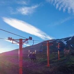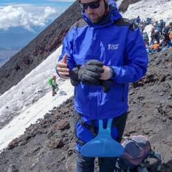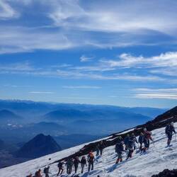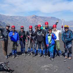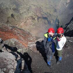 Und dann war an unserem letzten Tag in Pucón ja noch das mit dem rauchenden und aktivsten der 60 aktiven Vulkane in Chile. Lange und minutiös geplante Vorbereitung mit früh ins Bett, richtig essen, kein Alk und dem ganzen Theater. Um 06:30 ging es los, mit dem Büsli bis auf 1'400m und von da mit einem Sessellift (wobei man dies in unseren Breitengraden nicht so nennen und auch nicht für Personentransporte nutzen dürfte) auf 1'800m, quasi das Basislager. Richtige Wandervögel verzichten auf den Lift (der kostet zusätzlich soviel wie eine Tageskarte in St. Moritz), in unserer Gruppe wäre ich allerdings der einzige Vogel gewesen. Ab dann gehts nur in eine Richtung, bergauf, auf über 2'800m. Das klingt jetzt nach viel, aber um hier mal Tacheles zu reden, es war wie erwartet ein verdammter Spaziergang. Eine Gruppe von 8 plus 3 Guides. Und da wo ich (mit Sue im Schlepptau) bei unseren "self-guided" Hikes normalerweise zum Überholen der ganzen Hindernisse ansetzen würde, machten die Guides ... nichts. Gemütlich schlängelte sich die Gruppe als eine von vielen die Geröll- und Schnee-Serpentinen hinauf, ohne dass es mich (und zu meinem Erstaunen auch Sue) auch nur einen Tropfen Schweiss gekostet hat. Andere schon. Schön war es trotzdem. Richtig schön. Und der Abstieg ein ganz neues und aussergewöhnliches Erlebnis. Trotz teils heftigen Winden, liessen wir unsere kleine Spark bei diversen Gelegenheiten in die Luft. Gibt also auch noch einen Clip und mein Beitrag endet hier.
