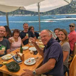 Und wäre das alles nicht schon genug des Guten gewesen, wurden wir neben einem äusserst leckeren venezuelianischen Dinner bei Freunden von Sue, an unserem letzten Tag in Santiago auch noch vom Vater eines Freundes (nennen wir ihn einfach Pedro Fictivo, um die Privatsphäre des realen Pedro nicht zu verletzen, wobei Ähnlichkeiten zu real existierenden Personen natürlich rein zufällig sind) zu einem wunderbar familiären Tag am Meer eingeladen: „Mittagessen in Zapallar, dann ausnüchtern am Strand und etwas baden, danach zurück“. Es wurde ein fantastischer Seafood-Lunch gepaart mit kühlem Chardonnay und flankiert von Pisco-Sour und etwas das an Appenzeller erinnerte, gefolgt von einigen Stunden Beach unter ständiger Beobachtung unzähliger majestätischer Pelikane und durch die Luft springender Delphine. Kitschig? Ziemlich. Für einen Kurzen Augenblick glaubte ich dann noch ein fliegendes Einhorn gesehen zu haben, aber das lag wohl am Pisco.