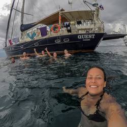 Neben uns beherbergt die Quest bei dieser Überfahrt noch drei Schweizer Mädels und ein irisches Pärchen. Wir verstehen uns blendend. Kein Wunder, kommen die Mädels ja aus den Kantonen AG und BE und nicht aus ZH oder SG. Nicht dass das wirklich eine Rolle spielen würde, aber ein gelegentliches Züri- und Ostschweiz-Bashing tut in etwa gleich gut, wie auf Jorges scheiss Schnorchelausrüstung rumzutrampeln oder drängelnde Kinder beim Gepäckband rumzuschupsen. Alles in Allem also ein wunderbarer Karibik-Törn, bei dem der Skipper immer ein Lächeln im Gesicht hat. Auch kein Wunder bei dem Arbeitsplatz (und meiner Gesellschaft). Göran, aus dessen Feder das gesamte Programm (und Menu) entsprang, verdient definitiv Bestnoten. Wir hatten mit einem eher spartanischen Törn mit simpler Küche gerechnet und einen luxuriösen all-inclusive Karibik-Cruise mit unzähligen Highlights bekommen. Ich habe mich daher vorsorglich auch schon auf die Liste von Görans nächster jedoch zeitlich noch nicht definierter Atlantiküberquerung setzen lassen. Schliesslich kennt er sich neben menschenwürdigen Toiletten und ausgezeichneten Speiseplänen als einer von wenigen auch mit Monsterwellen, genannt Freak-Waves, aus (der schnittige Schwede ab 25:22 - https://youtu.be/mC8bHxgdHH4). Geile Siech!