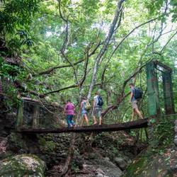Da wir nicht wie die beiden AG-Mädels mit Tauchschein beschäftigt sind, beschäftigen wir uns grösstenteils mit Schnorcheln und dem hier äusserst beliebten "dolce far niente". Ausserdem spielen wir gelegentlich mit Holzklötzen und einer dreissig Meter Rutsche, von der abgelegenen und - wie wir nach dem erhaltenen Upgrade finden - super geilen Bambuda Lodge direkt ins Meer. Und mit Deep-Boarding lernen wir sogar noch etwas Neues kennen und lieben. Ein Boot zieht eine Art Flügel hinter sich durchs Wasser, an dem man sich festhält und durch geschicktes Kippen abtauchen und vorbei an allerlei Meeresbewohnern durch Korallenriffe "fliegen" kann. Zumindest so lange man die Luft anhalten kann. Ausserdem zeigt uns einer der Guides neben Faultieren und Delphinen ihr eigenes Hollywood. Wie er uns stolz erklärt, würden an diesem Strandabschnitt mehr Sterne am Boden liegen, als auf dem Walk of Fame. Haha, total lustig. Ich würde ja mitlachen, habe aber eben erfahren, dass sich eines meiner Investments anders entwickelt als erhofft. Neben Bitcoins.