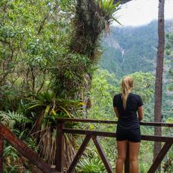 Die beiden Tage hier verbringen wir mit kurzen Hikes bzw. ausgedehnten Spaziergängen im strömenden Regen, wobei jedes erreichte Ziel noch eine kleine Enttäuschung für uns parat hielt. Die Brauerei neben der besuchten Kaffee-Farm war geschlossen, worauf es kein lange ersehntes Happy-Tucan-Bier gab und die mehrstufigen Wasserfälle von Ponzo Azul mit sonst kristallklaren Badebuchten erstrahlten aufgrund der starken Regenfälle in schlammigem braun. Wir hatten trotzdem unseren Spass hier. Wohl nicht zuletzt wegen der Tüte mit saurem Gummizeugs, die ich als Belohnung für die tapferen Regenwanderungen für uns bereit hielt. Die haben wir dann zur Abwechslung fair geteilt. Geht doch. Zumindest wenn ich die Verteilung kontrolliere.