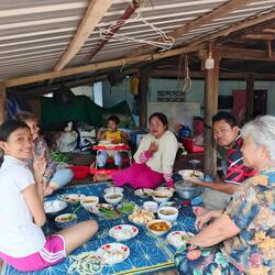 Delicious lunch. His wife's grandma takes care of Diana in the village while Lycheng and Dara work and study. Very typical village house and lifestyle.