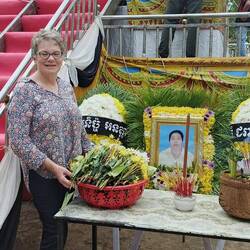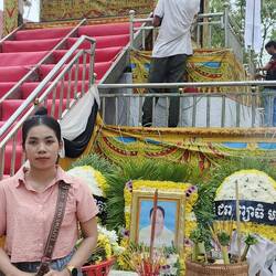 Thaery and I walked up the road in the afternoon to see all the monks prayers then they carry the body up on the pyre for burning at 9pm at night.