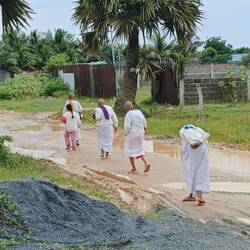 Very old ladies and a young girl who had some mental problems walked to the clinic from the Temple down the road.