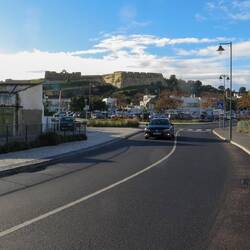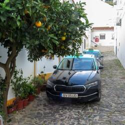 La primera impresión ha sido muy buena. La vista del castillo desde lejos es muy llamativa. Dormiremos en un parking muy amplio junto a la oficina de turismo, el Parque Ribeirinho de Silves.