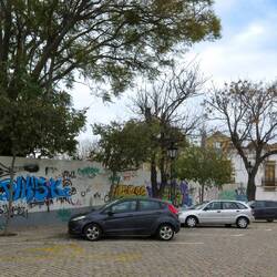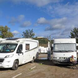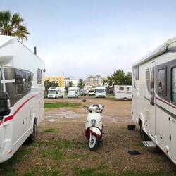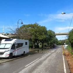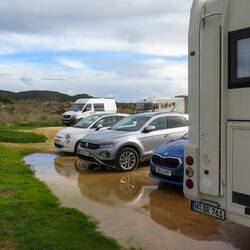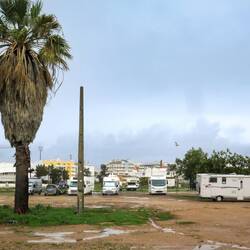 Otra vez en Nochevieja en el parking junto a la Ciudad Vieja de Faro. Prohibido circular autocaravanas. Empezamos el año como terminó.