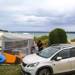 El camping municipal más grande de Francia: 30 hectáreas, 900 parcelas, 3500 campistas. Lo más parecido a la acampada libre. Playas enormes de arena fina. Mi camping favorito en Bretaña.