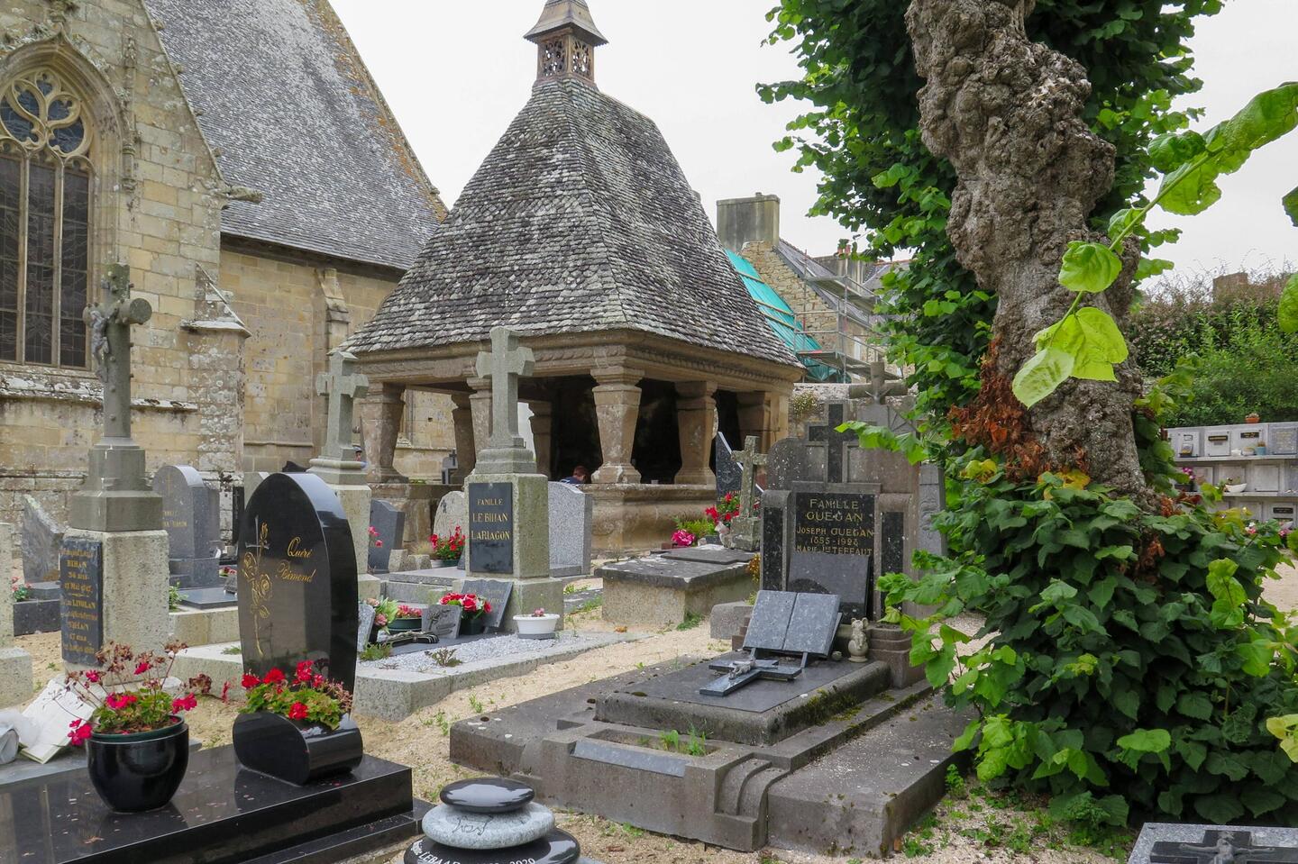 Uno de los más típicos de Bretaña; incluye la iglesia de San Juan Bautista, osario, calvario, cementerio, etc. Lo más curioso, que justifica un 'perdón' en el mes de junio, es que en la iglesiaRead more