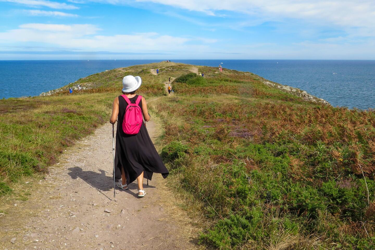 Un paseo que te permite ver la playa de l'Anse du Croc desde otra perspectiva, las aves en los acantilados, el faro de Cap Fréhel, ...