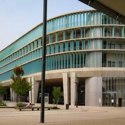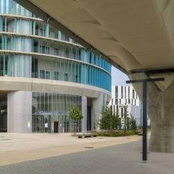 Construido sobre un antiguo campo de tiro, con una arquitectura atípica, arbolado, tranquilo y comunicado con la ciudad mediante un bus gratuito.