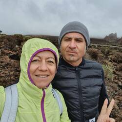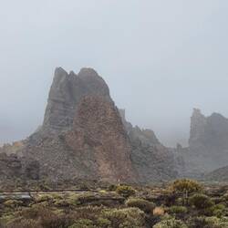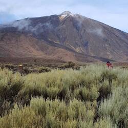 heute machten wir einen Ausflug mit dem Bus zum größten Berg (über 3700 m) auf Teneriffa. Es war bestes Wetter unten, doch schon bei der Auffahrt fing es an zu regnen, oben stürmte es wild und esBaca lagi