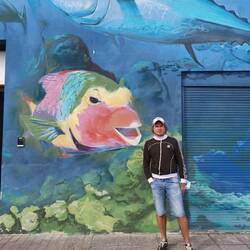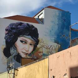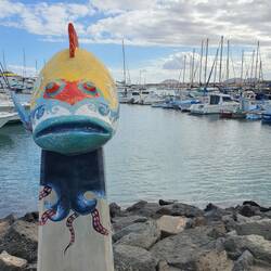 Da es morgens eher bewölkt war, sind wir mit dem Inselbus in die Hauptstadt Puerto del Rosario. Dort gibt es am Hafen und in der Innenstadt viel Freiluftkunst. Nachmittags in eine der vielen schönenBaca lagi