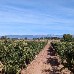The climb to Alto de San Anton was not difficult, and there was a long gradual descent to the river valley below. Mostly through more Rioja vineyards. Sue finally broke down and grabbed a bunch ofLäs mer