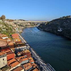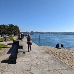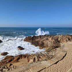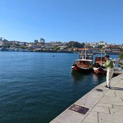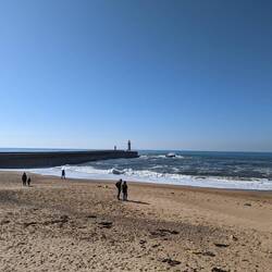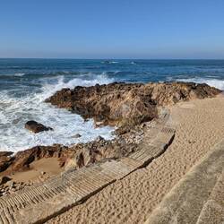 We took the old team line out to the mouth of the Douro river, seaside town of Fox do Douro. Beautiful weather! Sunny , warm Palm trees along the beach. Big waves breaking over the rocks. It wasLeer más