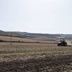We walked 4 km mostly through another shaded forest trail, the we emerged back into the sunny wheat, sunflower and potato fields.