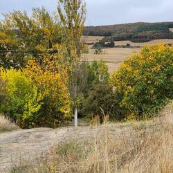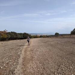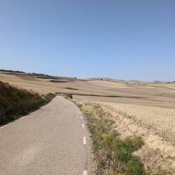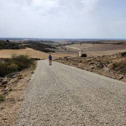 We walked out of Najera up a road through a gap in the cliffs, onto a wide open rolling plateau. Vineyards and fields that had been harvested already.